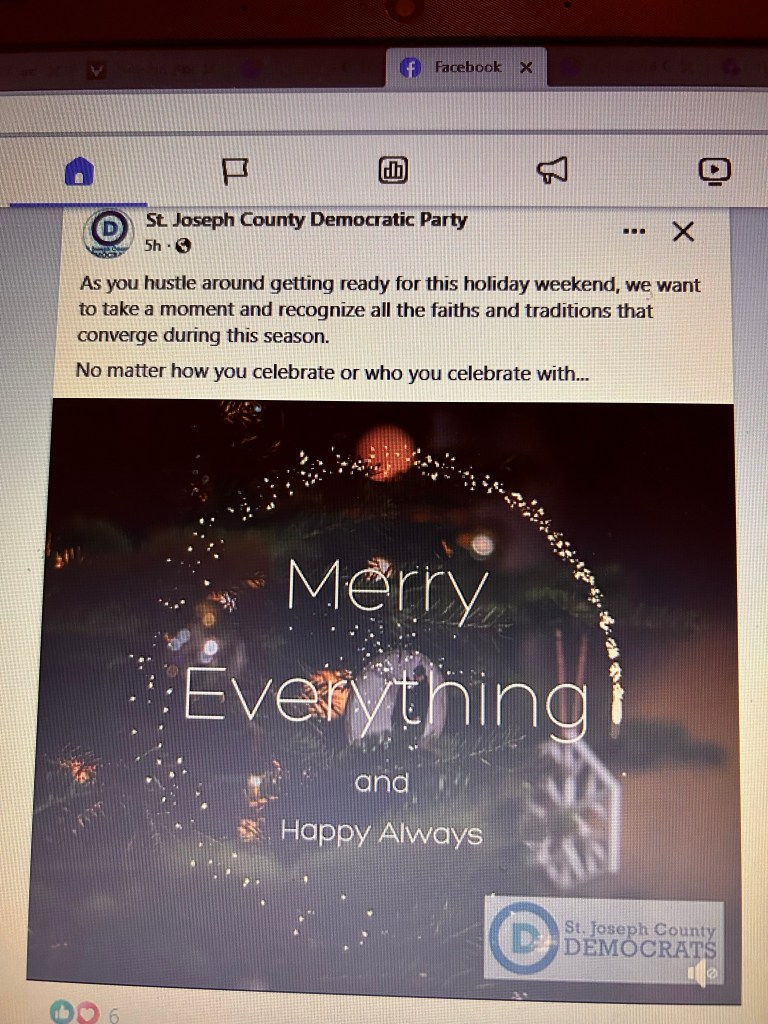 This past weekend, the St. Joseph County Democrat Party doubled down on its anti-Christmas rhetoric with another post to Facebook.