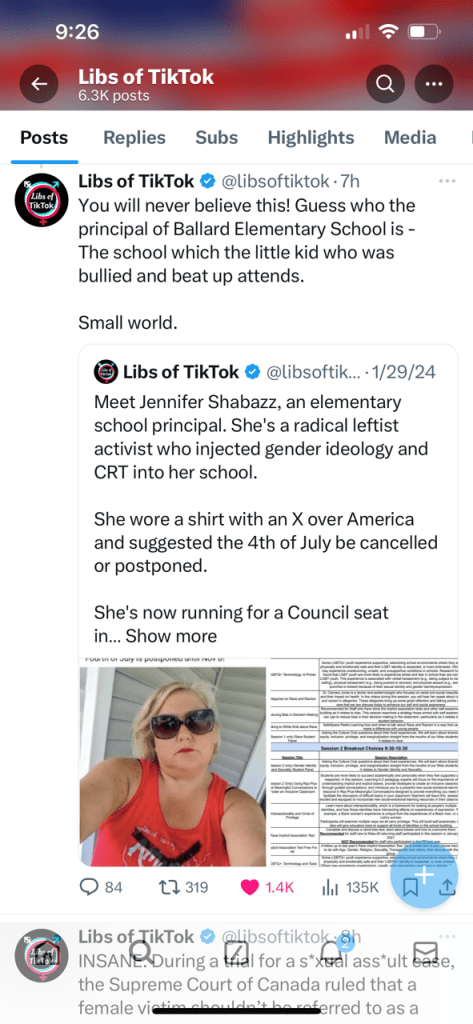 It turns out, the principal of Ballard Elementary School is a radical leftist who has been featured by REAL News in the past. In fact, Libs of TikTok picked up one of those stories involving Principal Jennifer Shabazz in January of this year.