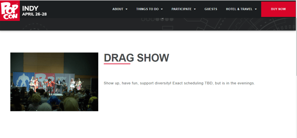 “Show up, have fun, support diversity! Exact scheduling TBD (to be determined), but is in the evenings.” The PopCon website states in the drag show section of the events schedule.