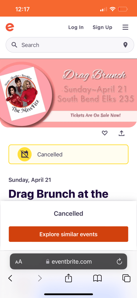While the show was scheduled for folks who are 21-and-older, one of the drag queens who was scheduled to perform at the April 21st event is is a man who uses the stage name Brooklyn Burroughs. Burroughs recently performed for children at the Westfield Pride event in Hamilton County, Indiana, in which kids gave him and others cash tips as they danced provocatively in front of them. Burroughs has also taken to social media to defend drag shows for kids, as seen below.