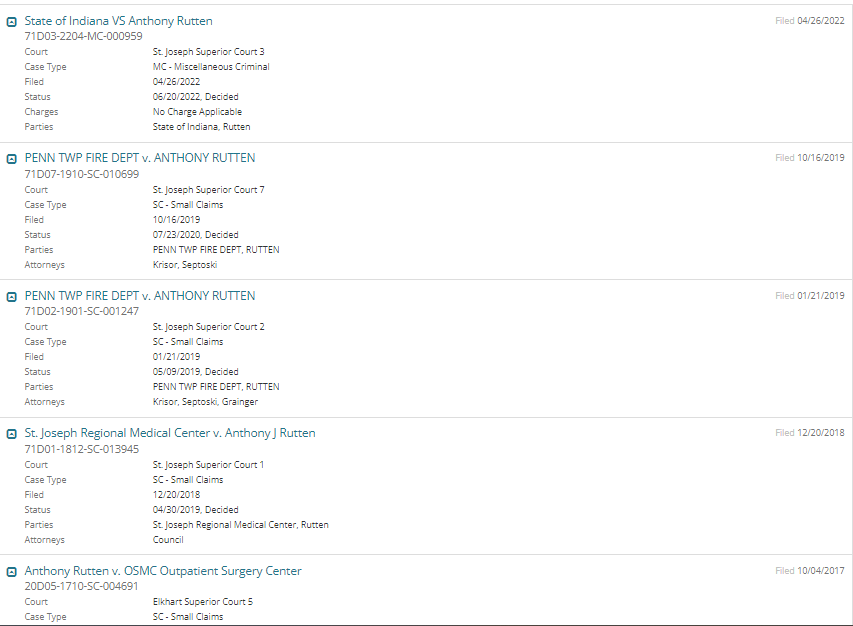 While REAL News Michiana does standard cursory background checks on all candidates, RNM was not aware of Mr. Rutten’s legal name. Because of that, we searched for Andrew and Andy Rutten months ago, discovering only one legal action with that name involving the St. Joseph County Department of Health. A search of Rutten’s legal name shows nearly a dozen legal actions dating back two decades.