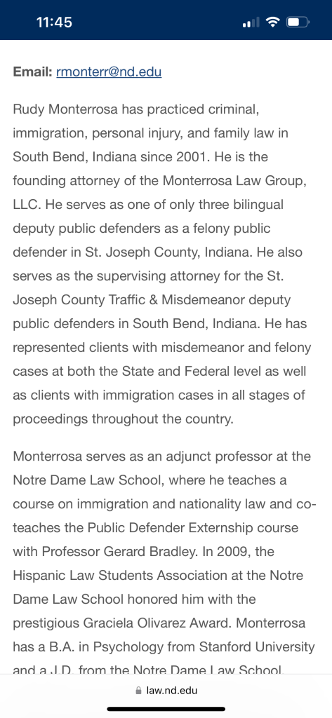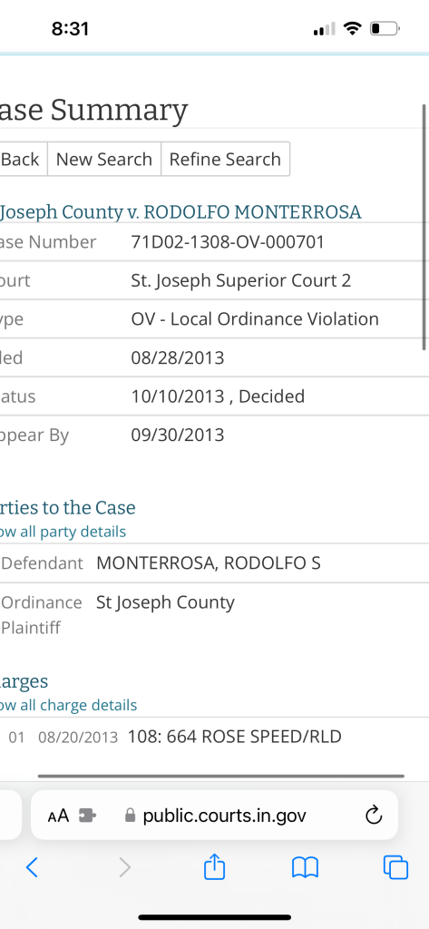 This is the 10th time Rodolfo Monterrosa has been cited for breaking traffic laws since 2010. However, every single citation he has received was eventually dropped. It’s unclear how Rodolfo Monterrosa was able to get all of his traffic citations dismissed. That being said, according to Rodolfo Monterrosa’s bio on the Notre Dame website, he currently serves as the Supervising Attorney for the St. Joseph County Traffic & Misdemeanor deputy public defenders. Monterrosa is also a large financial donor to the St. Joseph County Democrat Party.