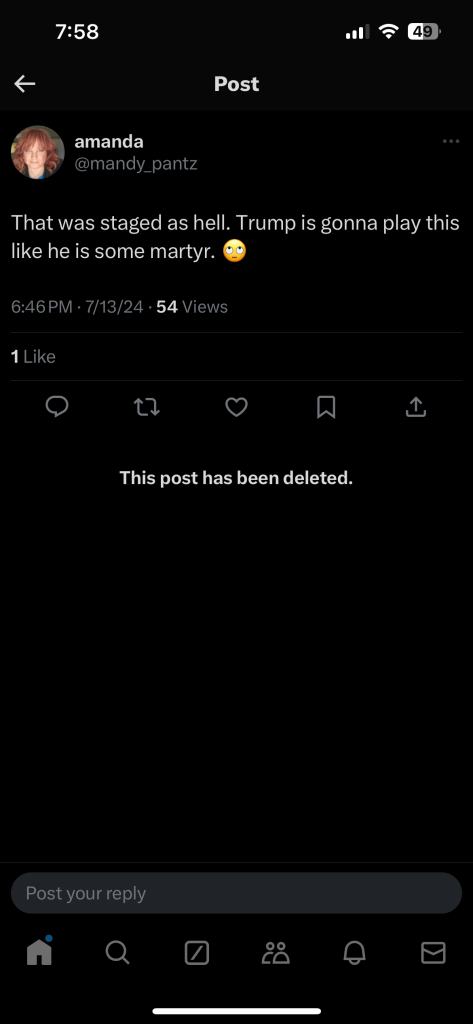 “That was staged as hell.” Konrath wrote. “Trump is gonna play this like he is some martyr.”
