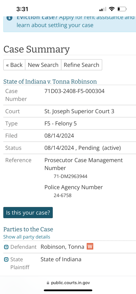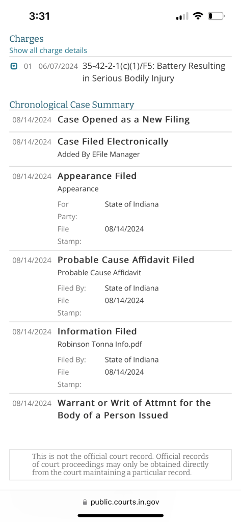 SOUTH BEND, Ind. — REAL News Michiana has learned the St. Joseph County Prosecutor’s Office filed felony charges against activist and well-known member of Antifa, Tonna Robinson, on Wednesday. The charges stem from her part in attacking a father and his son on the sidewalk outside of a drag show for children earlier this summer. The Prosecutor’s Office also obtained a warrant for Robinson’s arrest. Robinson is being charged with Battery Resulting in Serious Bodily Injury and faces up to six years in prison if convicted. Charging documents can be read in their entirety below.