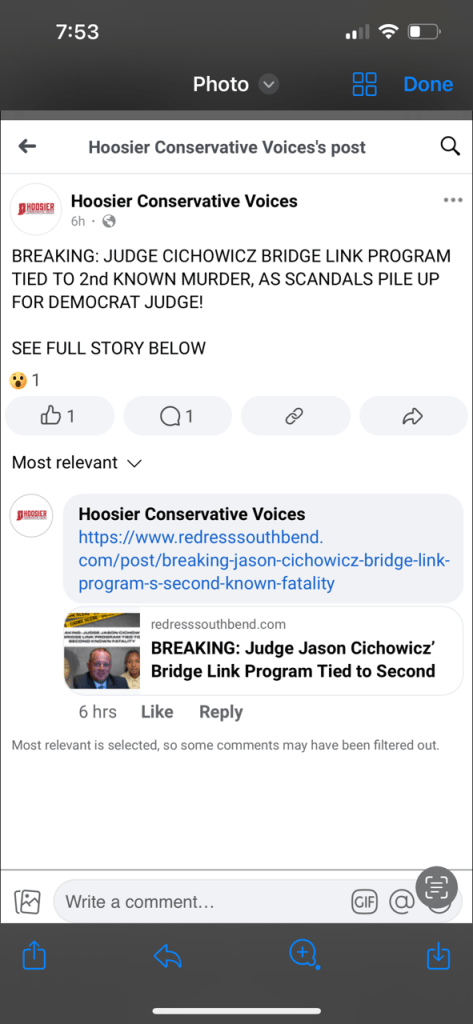 The Hoosier Conservative Voices PAC has also been spending the final weeks of the election cycle sharing the fundraiser. It’s important to note, Hoosier Conservative Voices was founded by current SJCGOP Chairwoman Jackie Horvath, who is also ultimately responsible for what the GOP also chooses to promote and spend GOP member and donor money on.