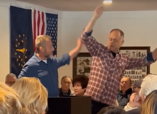 Screenshot from video taken at the St. Joseph County GOP meeting on Saturday November 9th, showing Joe Layne violently shoving St.Joseph County Councilman Dan Schaetzle.